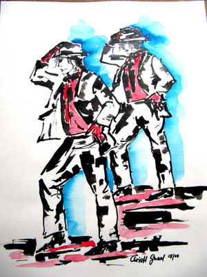 Menschen in Acryl, Tusche und Aquarell